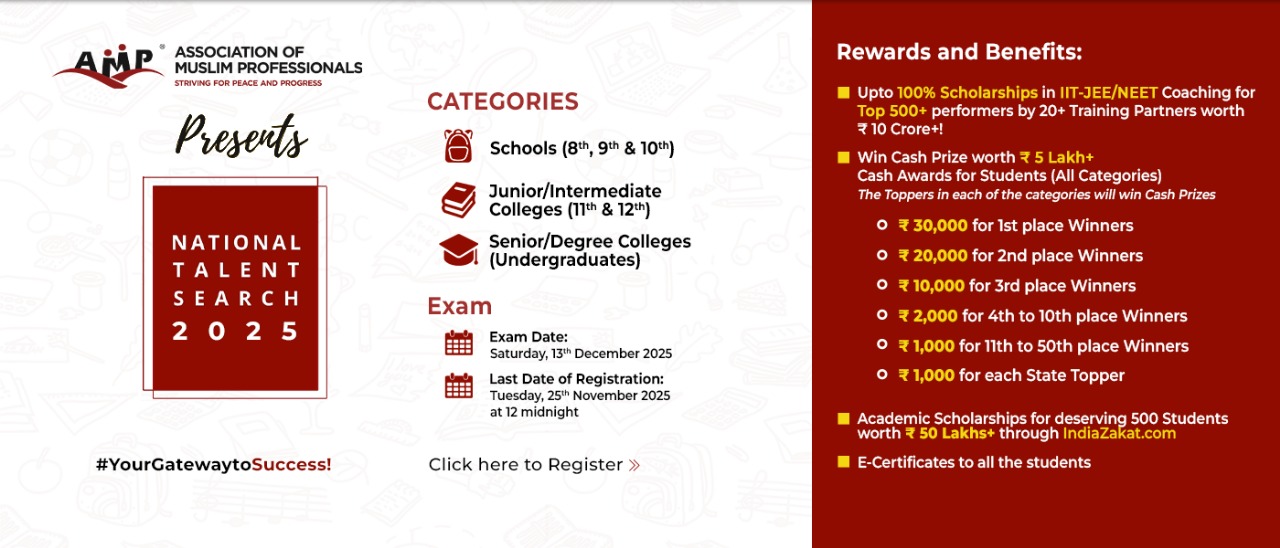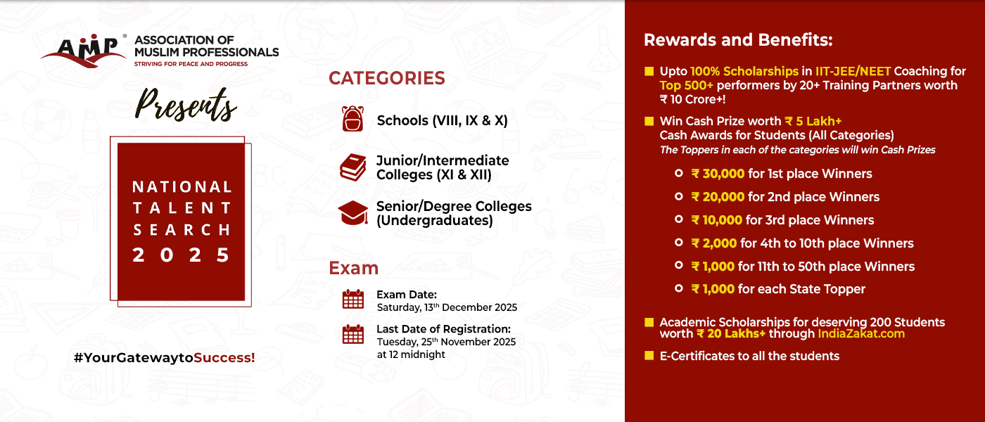 The AMP World App has successfully hosted all previous editions of the National Talent Search, with over 2.5 lakh students from across India registering and participating.